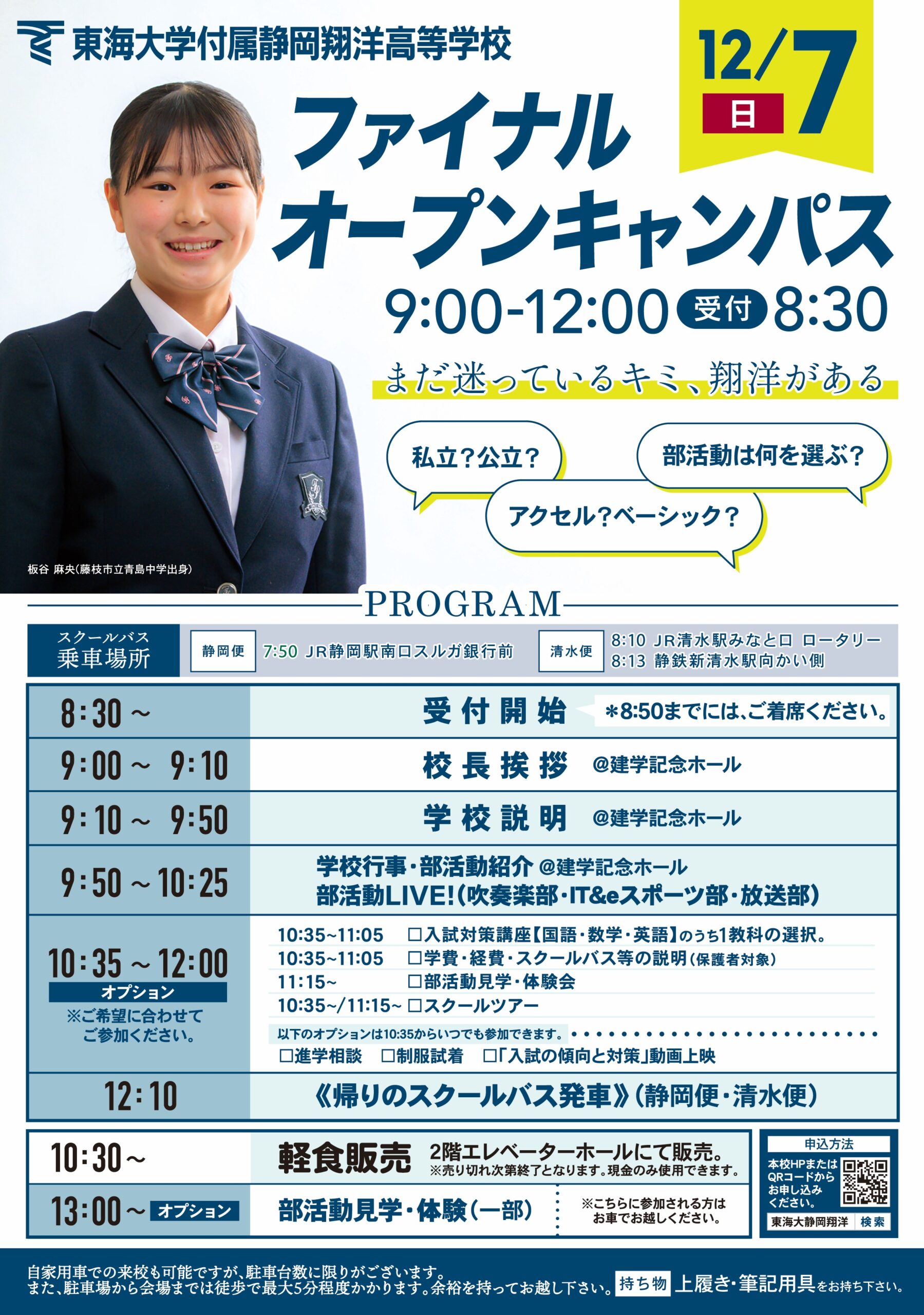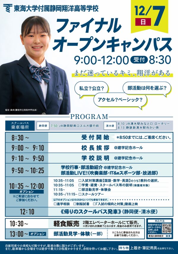 ※ミライコンパスから静岡翔洋の「ファイナルオープンキャンパス」を選んで申し込んでください。